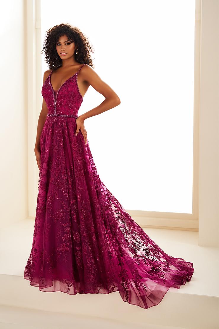 This dress is giving *major* vibes! The embroidered floral details are totally dreamy, and the plunging v-neckline adds that extra *wow* factor. The beaded waistband with its stone accents takes this look to a whole new level of glam. The A-line silhouette flows effortlessly, while the tulle makes it all super ethereal and princess-y. Oh, and the straps? So cute, plus the low back is everything. Perfect for when you want to look stunning and feel *like a boss*.