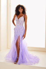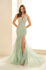 This dress is pure magic! The plunging illusion neckline is giving major wow factor, and the corset bodice snatches your waist for that flawless fit. Covered in flared glitter tulle, it has the perfect amount of sparkle that'll make you shine all night long. The slit adds a little edge, letting you strut with confidence.Floral stone appliques and floral-adorned straps take this gown to the next level, while lace-up back gives it a custom fit and adds to the drama. The floral mermaid silhouette is so dreamy, hugging your curves and flaring out with style. This dress is totally made for anyone ready to turn heads and slay their next big event!