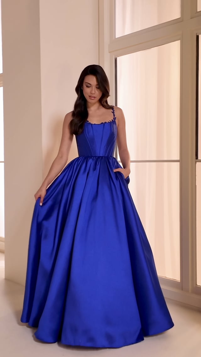 Turn heads and steal the spotlight in this show-stopping Ellie Wilde by Mon Cheri ball gown. Crafted from luxurious Brushed Satin, this gown offers a soft, rich texture that drapes beautifully while adding a touch of modern sophistication. The Appliqu detailing, enhanced with delicate Beading, creates a dazzling effect that adds a layer of intricate beauty to the design.Designed for both elegance and comfort, the gown features a Corset Bodice that contours to your figure, ensuring a flattering and supportive fit. The Lace-Up Back allows for a customizable fit, while the voluminous skirt is expertly structured with Crinoline and Horsehair detailing, giving it dramatic fullness and movement. Practical yet stylish, this gown also features Side Pocketsperfect for holding your essentials or simply adding a contemporary edge.Whether you're attending prom, a gala, or any formal event, this Ellie Wilde gown offers a perfect combination of classic grace and contemporary style. It's a dress made for those unforgettable moments when all eyes are on you.