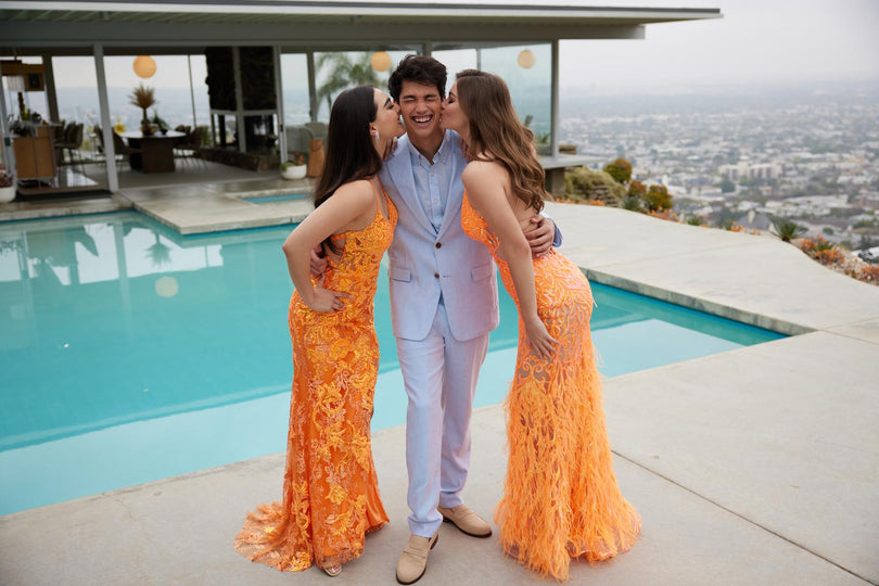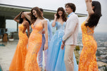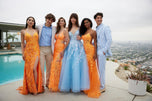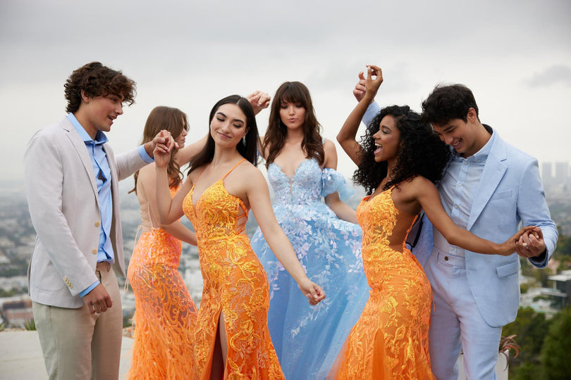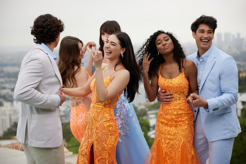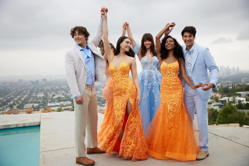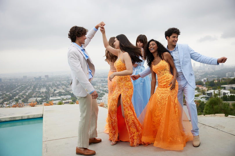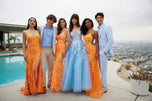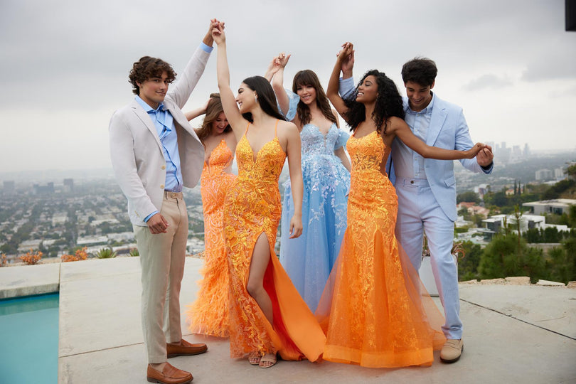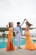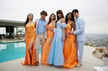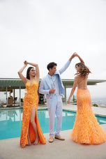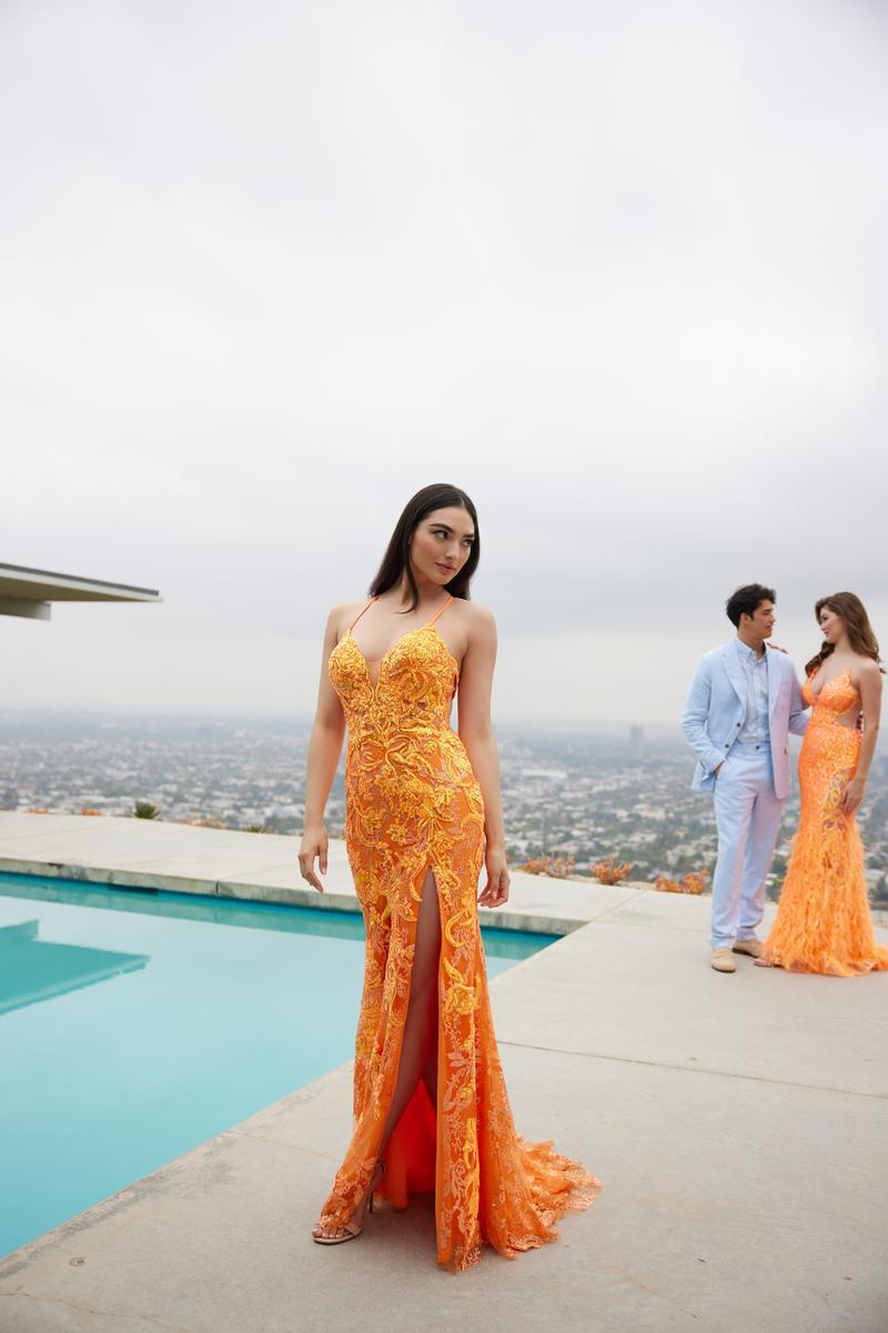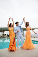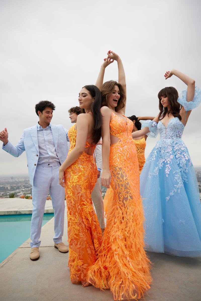 The fabric in this Ellie Wilde by Mon Cheri style is Sequin Tulle