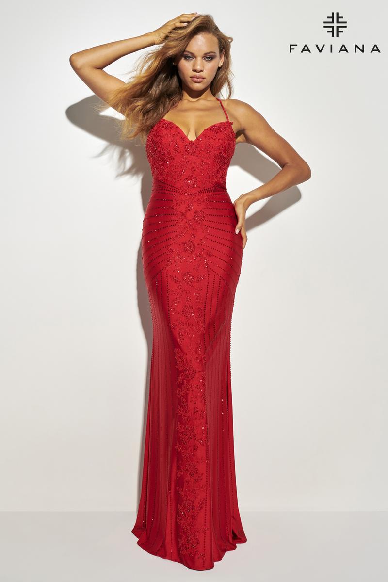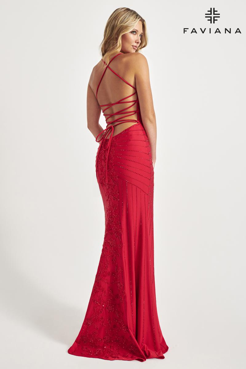Faviana Beaded Lace-up Back Prom Dress 11021