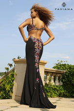 We are obsessing over this gorgeous gown created by Faviana, 11027.This long jersey made prom dress is adorned with dazzling sequin floral appliques that will have you standing out! A unique open back with side cutouts and sweep train. This is made just for you and will show off those sexy curves! For additional details on this gem, give us a call at Terry Costa!