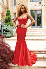 Be the ultimate Femme-Fatale and captivate the room in Faviana's Satin Mermaid Gown with Sweetheart Neckline. This stunning prom dress features a figure-hugging silhouette that effortlessly blends fierceness and sophistication. The luxurious satin fabric catches the light with every movement, while the sweetheart neckline adds a touch of romance. Perfect for any bold and confident woman, this gown is designed to make a lasting impression with its sleek, dramatic mermaid shape and timeless elegance. Step into the spotlight and own the night in this unforgettable look!
