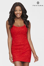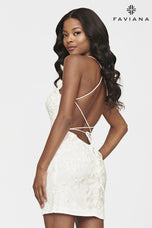 Dance the night away in the Faviana S10602, a short tulle homecoming dress made to sparkle and shine! This gorgeous dress features a flattering scoop neckline and delicate applique detailing that adds elegance and a touch of glamour. The lace-up back allows for a customizable, flirty fit, while the invisible zipper with hook & eye closure ensures a smooth, seamless silhouette. Crafted from soft tulle with intricate applique, this dress flows beautifully with every twirl and move, giving you all-night comfort and confidence. Faviana S10602 is the perfect short homecoming dress for the girl who wants to feel magical, stylish, and totally unforgettable!