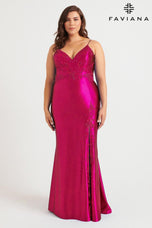 Terry Costa has you covered with the best of Faviana from their 2025 collection. 9562, displays a v-neckline with thick straps for extra support, an eye-catching lace-up that will give you that snatched waistline, and enough lace detailing with beading to add that spark. The satin fitted silhouette will hug on your figure perfectly showing off your beautiful curves! Grab yours now!