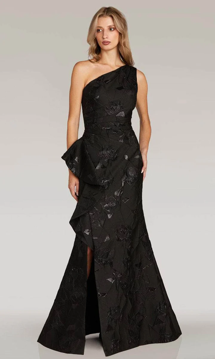 Unveil elegance in the 18348 dress by Feriani. This stunning piece showcases a captivating one-shoulder neckline, adding a touch of sophistication. Its trumpet silhouette is designed to beautifully contour your curves, highlighting the waist before gently flaring out into a graceful, sweeping train. This exquisite design not only accentuates the feminine figure but also imbues a sense of fluidity and motion with every step you take. This dress is a final sale. No Returns or Exchanges.
