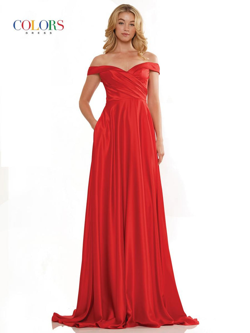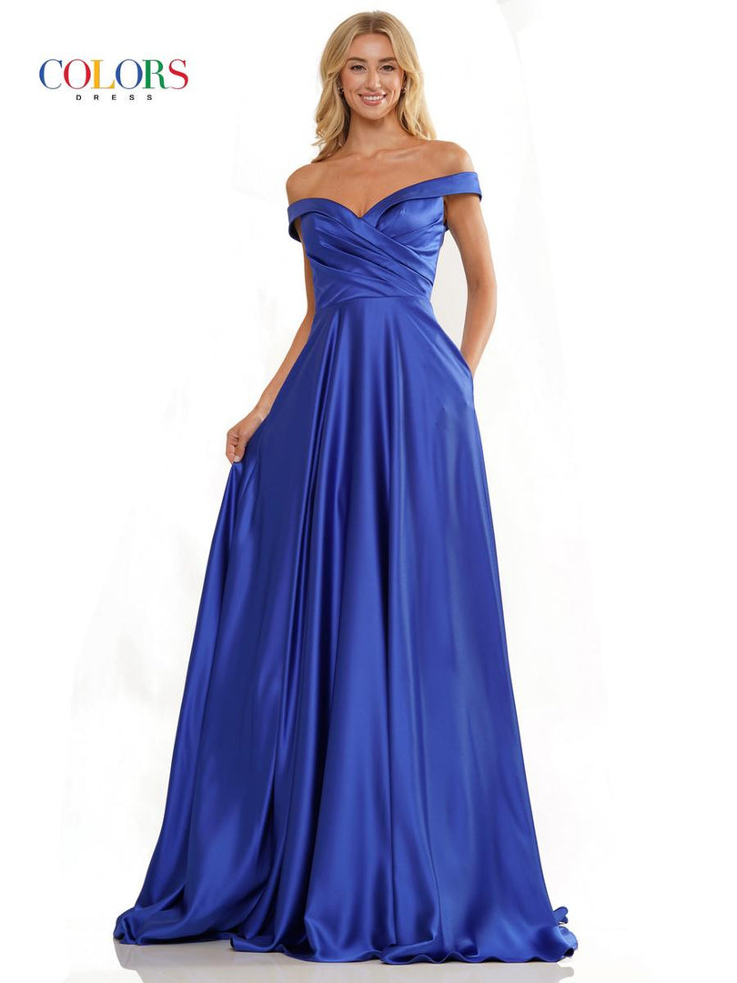 Elevated Elegance is the perfect way to describe Glow by Colors Dress G1099. The off-the-shoulder satin A-line prom dress features a sweetheart neckline, ruching at the bodice, empire waist, and flowing satin skirt. The overwhelming fan-favorite feature is the pockets! Feel relaxed and confident at your next event in this charming gown from Glow Dress.