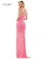 Bold and Inspired, Glow by Colors Dress K153 is an amazingly intricate prom dress with butterfly bodice, high slit, and strappy open back. The entire gown is intricate beadwork over mesh. Stand out from the crowd at prom 2023 in this amazing Glow Dress gown!