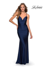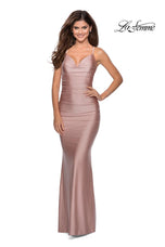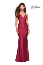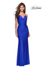 Dress to impress! This gorgeous long sweetheart neckline dress features a ruched top supported with spaghetti straps that lead into the strappy back. LaFemme 27501 is a fitted jersey gown has a low cut back to create a sexy, sultry look. Perfect for Prom, Galas, Formals, and so much more!