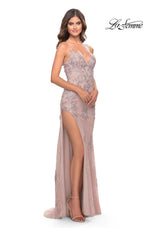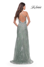 You'll be the talk of the night in La Femme style 30794. Chic an covered in gorgeous lace we know that you will absolutely love. Complimenting this long slender silhouette is an eye catching low v-shaped neckline that is sure to have all eyes on you. Every angle of this dress is worthy of a picture; all the way to the romantic open back. The thigh high slit is eye catching and we know that you'll love it. If you are looking for a prom dress or something special for your next special occasion then shop right here at Terry Costa.
