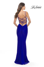 Leave a long-lasting impression when you show this La Femme gown off to any special event! 31294, showcases a jersey material that will hug on you just right. The stunning bodice has unique trend of cutouts and thin straps. The open back has an open lace-up back for easier adjusting and sweep train that will sway with every step that you take!