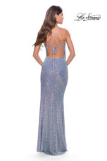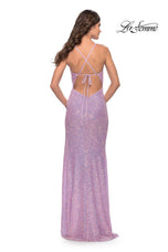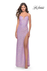 Say Yes to the prom dress at Terry Costa in this stunning long sequin gown by La Femme from Spring 2023 Collection. 31329, showcases a deep v neckline, thin straps that cross onto the open back. The fitted gown is adorned with sequins for sparkle and is completed with a side ruching on the leg slit. Need additional details on this gem, give us a call at Terry Costa or visit us in store!