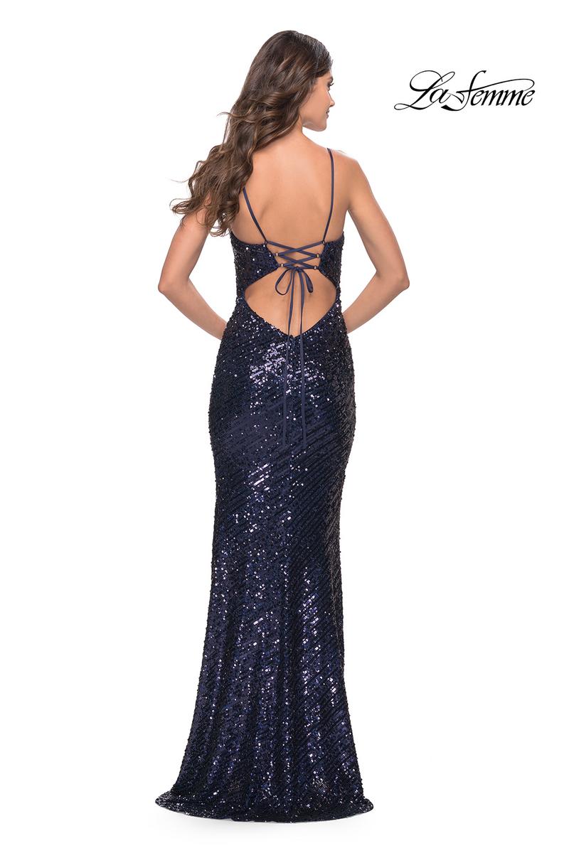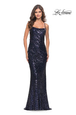 OMG! 31518, is a jaw-dropping gown from La Femme from Spring 2023 Collection. The classy gown is decorated with glamorous beading. A scoop neckline, thin straps and strappy back. The gown is completed with a sweep train that will sway with every dance move you make!