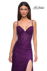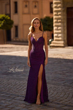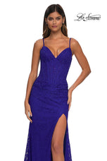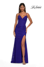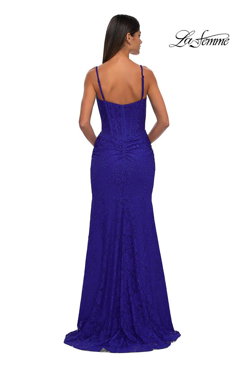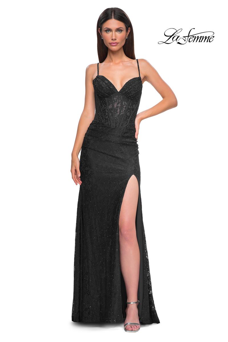 The fabric in this La Femme Prom style is Lace