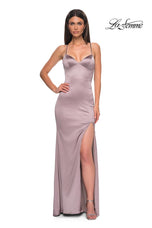 The fabric in this La Femme Prom style is Satin