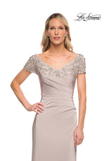 Capture the essence of refined beauty with the La Femme 28321 Mother of the Occasion Dress - an exquisite jersey gown designed to make you feel like the epitome of elegance. This long evening dress features a V-neckline that complements the overall feminine silhouette. The delicate floral bead detail adds a touch of allure and sophistication, making it perfect for formal events. Crafted from luxurious jersey fabric, this dress promises to be both comfortable and stylish. Created by La Femme, a renowned brand celebrated for their exquisite designs, this dress embodies their commitment to exceptional craftsmanship and attention to detail.