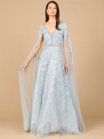 Lara Embellished V-Neck Cape Sleeve Evening Gown 28937
