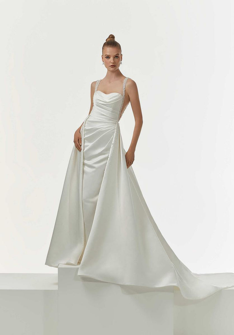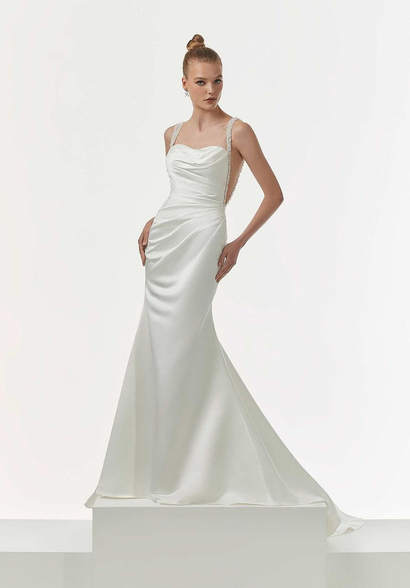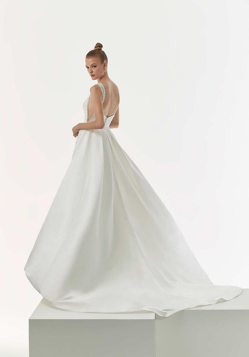 Chic and glamorous, our Nadine designer wedding dress glows in luxe satin. The s - 1229 by Morilee
