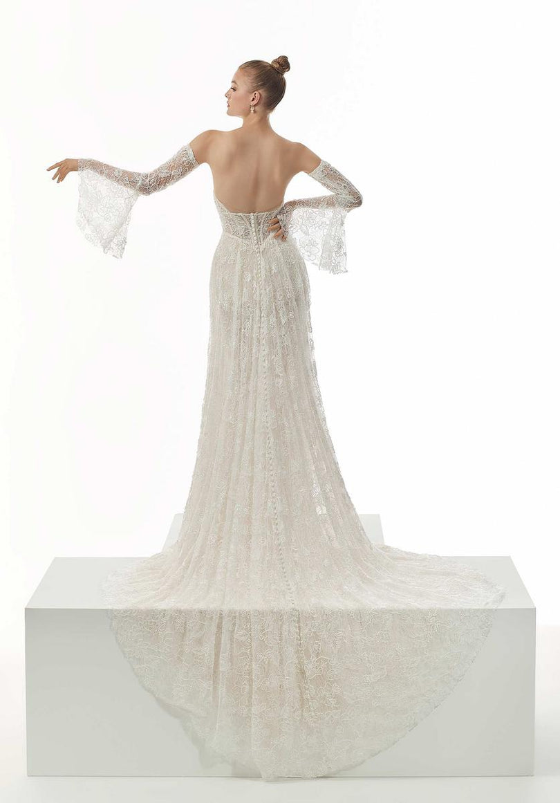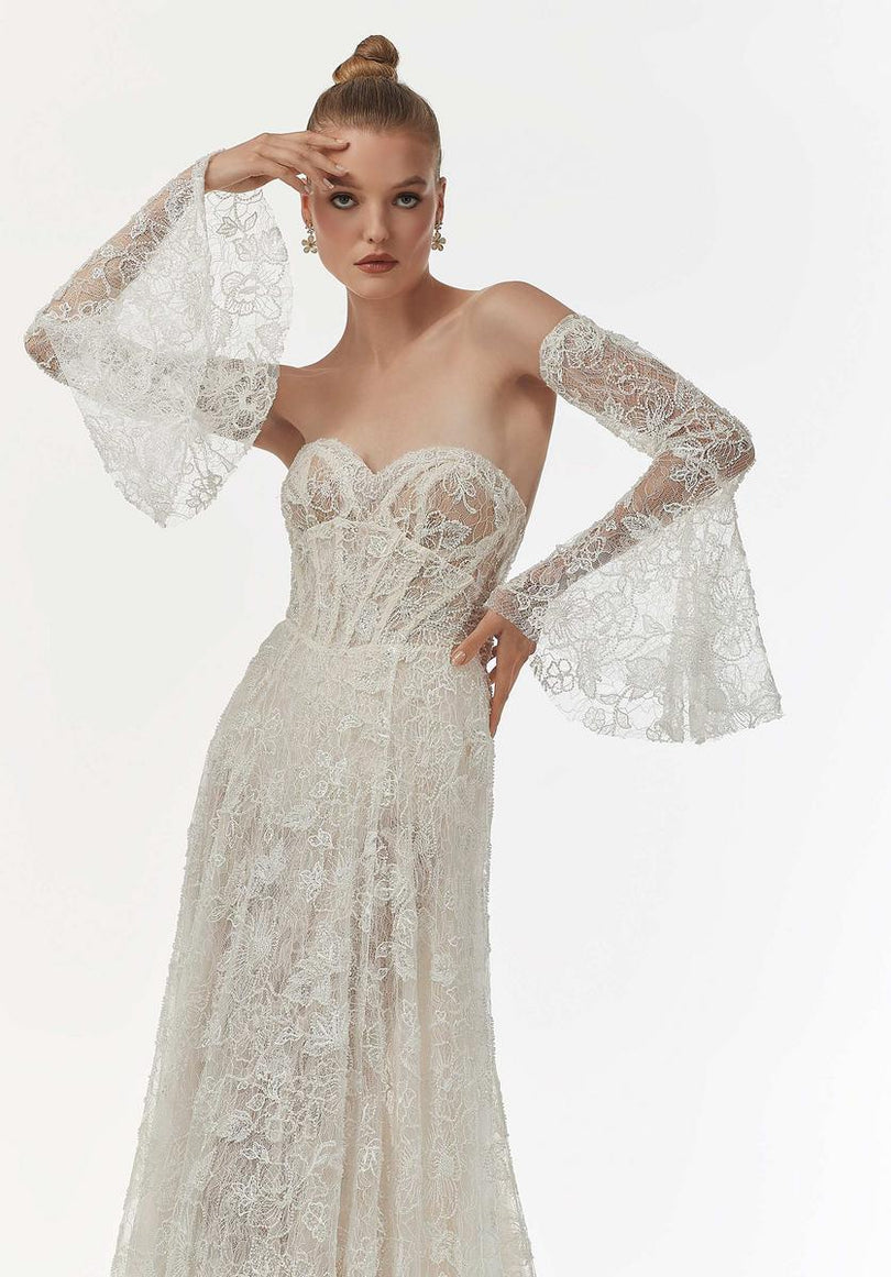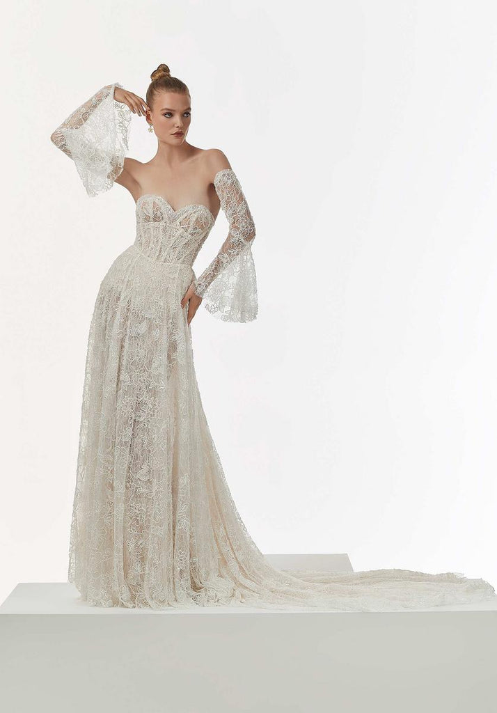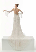 Our Nicoletta designer wedding dress is both boho and couture in allover beaded