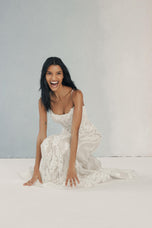 Marisa is a flirty floral lacey look for Madison James' Fall 2021 Bridal Gown collection. Whether you're planning an elegant outdoor ceremony or an informal beach wedding, you'll love this classic yet modern look, featuring a scoop neckline and delicate, comfortable straps. A demurely sexy illusion back completes the look, fit for a princess on your big day! Please call our Dallas, Texas location to check in-store availability, pricing and current ship dates.