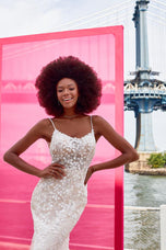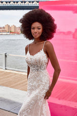 Sequined Chantilly lace and English net compose the elegant Joey gown.Refer to measurements for Size Chart B