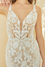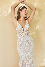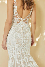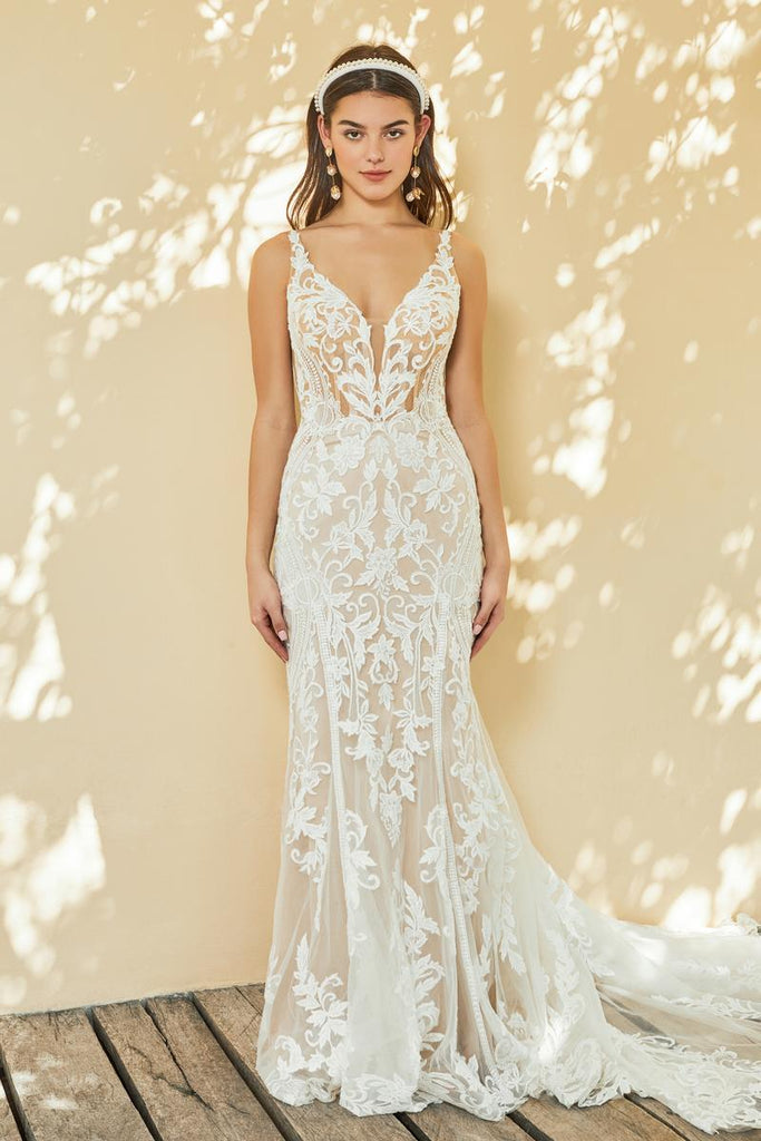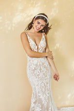 A little modernity never hurts when you're planning your unique and chic wedding day vibe and Idris is a perfect centerpiece for your look. Designed for the Fall 2023 Madison James Bridal Gown collection, she features eye-catching matte lace appliques atop a tulle sheath silhouette with a plunging neckline and low, open back. Ready for your destination wedding or elegant ceremony, she won't disappoint. How are Dallas, Texas location to check in-store availability, pricing, and current ship dates.