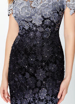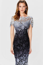Montage by Mon Cheri style 119958 is nothing short of romantic. This gown is covered in beautiful ombre Venice lace. It also has a stunning illusion neckline that is covered in the same ombre lace. And for a little coverage this gown offers a short lace capped sleeve. If you are looking for a mother of the occasion dress or a formal gown then this style is perfect for you!! This dress is a final sale. No Returns or Exchanges.