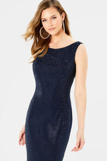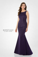 Wear this breathtaking long evening gown designed by Montage. 220950, features a high neckline that forms into a v-open back. This silhouette is made of jersey fit that will hug your curves and is adorned in stone accents. Completing this look is a sweep train that will follow evert step that you take! Perfect for Black-tie, Gala or Mother of Occasion!
