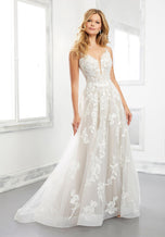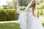 As romantic as she is modern, we know our fashion-forward brides will love Bernadette, an a-line ball gown featured in Morilee's Spring 2021 Designer Bridal Gown collection. An effortless and elegant dream dress, ethereal tulle sits below delicate frosted, embroidered appliques(so dreamy!)and has sheer straps that flow into a breathtaking illusion back, accented with brilliant beading. You'll love the flattering and comfortable sweetheart neckline with plunging illusion mesh! A wide horsehair hemline adds cleans lines to a lovely sheer train and will help you float down the aisle to the man of your dreams at your formal ceremony or destination dream wedding. Available in three lengths and shown here in Ivory/Cappuccino/Honey. Please call our Dallas, Texas location to check in-store availability, current ship dates and pricing.