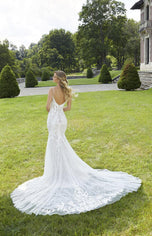 A modern look for a modern bride, Dimitra is a gorgeous wedding dress fit for your destination gown or a boho-inspired ceremony in the woods. Featuring a flattering and modern square neckline and delicate yet comfortable straps, we're loving this lacey look for almost any ceremony, whether you're outdoors on the beach or inside your childhood church. Designed for Morilee's Spring 2022 Bridal Gown collection, you'll love the floral appliques and mermaid silhouette. Finished with a fabulous lace-trimmed train to give the bridal gown a magical touch. For more information on this and other chic wedding dresses, please call our Dallas, Texas bridal boutique to check in-store availability, pricing and current ship dates.