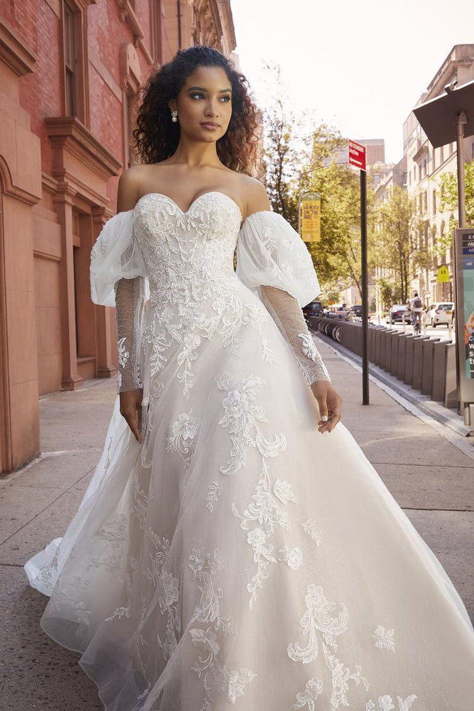 This Mori Lee Bridal Gown has Duchess Satin with Embroidery. Style #2512 is perfect for your 2015 wedding day! Available in Ivory/Silver and White/Silver!