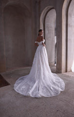 Softly sparkling and effortlessly romantic, the Filippa gown from Morilees Fall 2025 collection is a dreamy take on classic bridal style. This airy A-line silhouette features a plunging sweetheart neckline and a structured bodice adorned with shimmering sequin and floral beaded threadwork appliqus. Detachable off-the-shoulder straps offer styling versatility, allowing brides to switch from timeless to modern with ease. Crafted in glitter tulle, the skirt floats gracefully, catching the light with every step. Perfect for the bride who wants a balance of elegance and ethereal charm, Filippa is delicate, feminine, and unforgettable.
