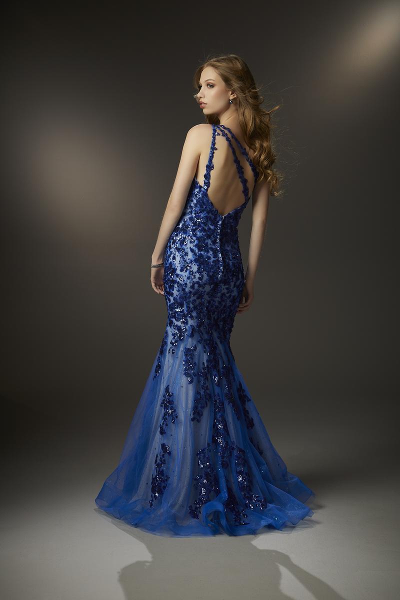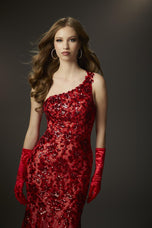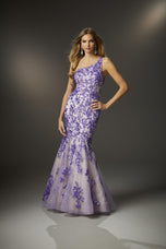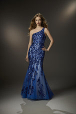 Have all eyes on you in this pretty mermaid prom dress by Morilee Prom, style 48025. The one-shoulder neckline adds a modesty touch. The gown is created with crystal beaded pattern sequins accented by delicate embroidery on glitter tulle for extra pop of bling. A flare in the mermaid skirt is enhanced by he horsehair trim. This creates an instagram worthy silhouette so don't forget to hashtag #TerryCostaProm on your big night!