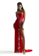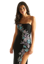 Morilee Strapless 3D Floral High Slit Prom Dress 49009