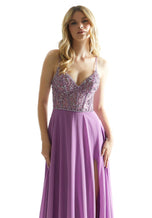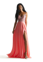 49070, is so dreamy and is created by Morilee from 2024 Collection. This beautiful aline gown displays a fully beaded top with plunged neckline and thins traps. The flowy chiffon skirt will sway with every step that you take!