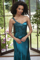 WOW! You're gonna die over this dress! This stunning piece features a flirty sweetheart neckline that shows off the perfect amount of chest in the cutest way. The one-shoulder embroidered floral sleeve is total goals with delicate blooms that add a touch of whimsical romance. The corset style bodice hugs you just right while flowing perfect into the knees that then become a cute flare. The shimmer too? Like, it's practically glowing in the light, giving you that Insta-worthy glow at every angle. The low back is so so sultry, and the fitted silhouette is beyond flattering, making you feel beautiful. Whether you're hitting the dance floor or walking into a party, this dress will have all eyes on you.