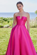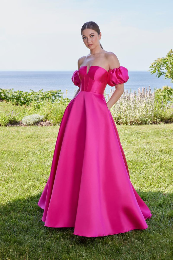 Get ready to live your Cinderella or Tiana fantasy in this beyond dreamy dress! Starting off with a strapless design and a super flattering v-notch neckline, you'll be serving major princess vibes all night. The detachable puff sleeves are perfect for when you want to switch it up, giving you that extra fairytale moment. The boned corset bodice gives you that snatched look, while the lace-up back adds a little bit of drama. Plus, did we mention pockets?? Yup, you get to feel fancy and practical! Made with luxe mikado fabric, this ballgown is the ultimate mix of glam and comfort.