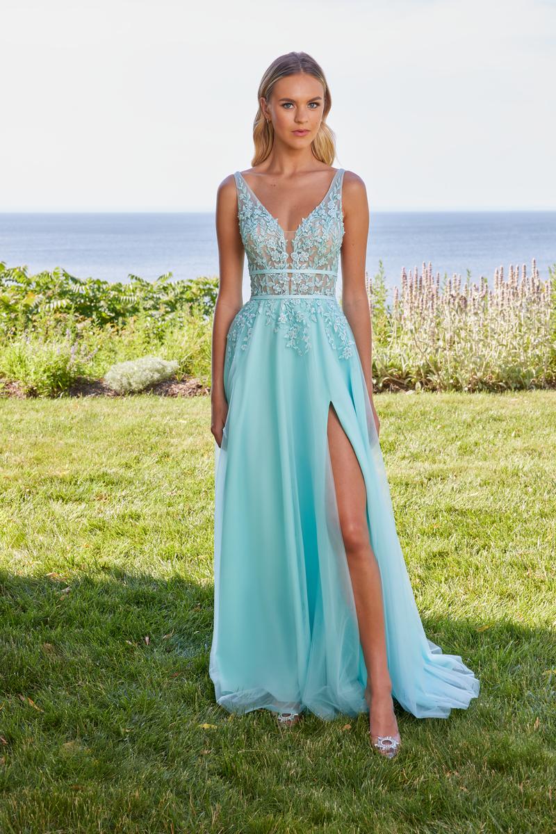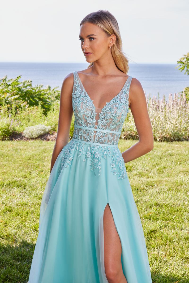 Step into your Disney fairytale in this dreamy A-line dress, designed to make you feel like a true princess! The double-banded waist cinches in your figure, while the flowy tulle skirt adds that magical touch. Designed with embroidered floral appliques, this dress is a vision of romance and elegance. The plunging illusion neckline paired with illusion straps creates a stunning, ethereal look, while the daring slit adds a modern twist. All the sheer details is what makes the dress stand out! Perfect for prom, homecoming, or any special event, this dress will have you feeling confident, fabulous, and ready to steal the show!