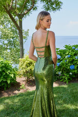 WOW! Radiate glamour and sophistication in this mesmerizing mermaid gown, curated to make a bold statement. The modified sweetheart neckline elegantly frames the dcolletage, while shimmering sequins catch the light with every movement, creating a dazzling effect. Beaded straps add a touch of opulence, enhancing the gown's stunning design. The strappy back cut-outs offer a daring, modern twist, drawing attention to your flawless figure. A thigh-high slit adds a touch of allure and movement, making this gown the perfect choice for an unforgettable evening of style and elegance.
