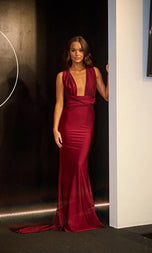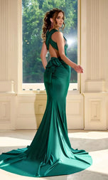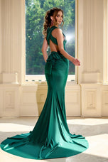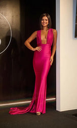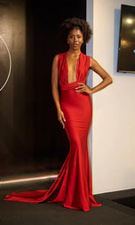 Get ready to receive all the compliments when you showcase this sexy and vibrant gown created by Portia and Scarlett. PS24053X, is made in jersey fabric that will fascinate your figure. A v cut neckline with thick straps, crossover along the waistline that will cinch you in. A fitted skirt with gorgeous train finishes this look!