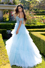 Step into a fairytale with the Portia and Scarlett PS25303, a breathtaking ballgown prom dress designed to make every moment unforgettable. The romantic off-the-shoulder design and sweetheart neckline create a timeless, elegant look, while the illusion corset-style bodice adds structure and sophistication.Intricate embellishments cover the bodice, catching the light beautifully, while the layered tulle ruffle skirt adds volume, movement, and drama. Perfect for prom or any special occasion, the PS25303 combines classic glamour with modern couture details for a truly show-stopping ensemble.