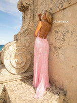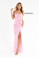 Captivate the crowd in this beautiful long beaded gown designed by Primavera Couture. 3737, features a scoop neckline, thin straps that creates an eye-catching open lace-up back! The fitted silhouette will hug onto you perfectly. Make this your go-to for Senior Prom!