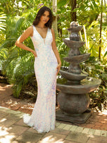 Dress to impress at Prom 2023 in this long beaded prom dress by Primavera! This long beaded beauty features a fitted bodice with plunging neckline and modesty panel detail. The long floor length skirt features the same stunning sequin pattern. We love the elegant low back on this long dress! This long prom dress with pair nicely with a pair of nude heels and your favorite earrings!