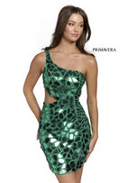 embrace your uniqueness in this beaded cocktail gown designed by Primavera! 3529, is fully adorned in cut-glass mirrored beading and showcases a one-shoulder neckline, side cutout and enclosed zipper back! Thee fitted gown will definitely hug you figure perfectly! Perfect attire for senior prom or Hoco!