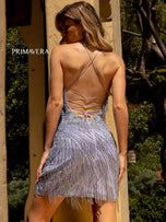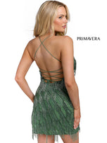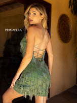 This Primavera Cocktail dress is the made for you! 3812, has a sexy plunging v-neckline with thin beaded straps that create an open lace-up back for a snug fit. Created with layers of bead fringe that will flow with every dance move you make! So be ready for homecoming night in this Beautiful dress,