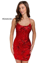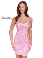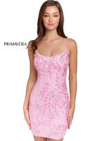 Be ready for senior homecoming! This short, beaded Primavera dress will be a memorable night for you. 3816, is from Fall 2022 Collection, and showcases a scoop neckline, spaghetti straps that creates an eye-catching lace-up back for snug fit. The iridescent beading on this gown is just stunning!