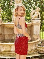 Step into the spotlight with the Primavera Homecoming Dress, style 4052. This captivating cocktail dress is adorned with shimmering sequins, creating a glamorous and eye-catching look. The cut-out back with contrasting sequin detail adds a touch of intrigue and modernity, ensuring you stand out from the crowd. With its tight-fitted silhouette and flattering V-neckline, this dress accentuates your figure with elegance and allure. Whether you're attending a homecoming event or a cocktail party, the Primavera 4052 dress guarantees a show-stopping entrance that will leave a lasting impression. Embrace the sophistication and confidence of this exquisite Primavera creation and make your event unforgettable.