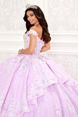 The fabric in this Princesa by Ariana Vara Quinceanera dress is Embroidered Lace, Fused Chantilly lace, Glitter Tulle, Beading, Three-Dimensional Flowers, Stone Accents . Detachable Halter Piece Included