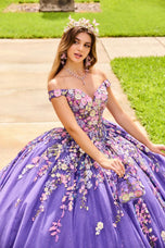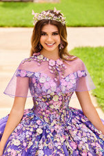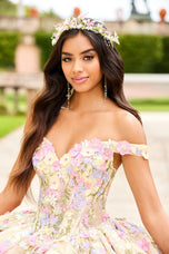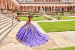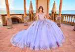 The epitome of regal allure in this Princesa by Ariana Vara Quinceanera gown. Crafted from ethereal Glitter Tulle adorned with intricate Lace Applique, every detail shimmers with delicate Stone Accents and sparkling Sequins. The voluminous Tulle skirt cascades gracefully, edged with dramatic Horsehair for added flair. Detachable Off-Shoulder Straps offer versatility, while a luxurious Caplet completes the ensemble with timeless elegance. This dress embodies a fairy tale dream, fit for a modern princess ready to enchant and captivate under the quinceaera lights, ensuring an unforgettable celebration of elegance and romance.
