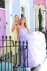 Be a modern day princess in this ball gown from Sherri Hill's Spring 2021 prom press collection style 53116. Featuring a full, tulle skirt accented with 3D floral appliques, we are definitely imagining this look on the field for Homecoming court! A super-fun style to keep you on the dance floor all night long, this gown is finished with double skinny straps that criss-cross over the open back. Also available in ivory/nude, we're also loving this look for your Debutante Ball or informal wedding dress. What a perfect look for an outdoor reception! Call our Dallas, Texas Homecoming headquarters to score this hot style today!